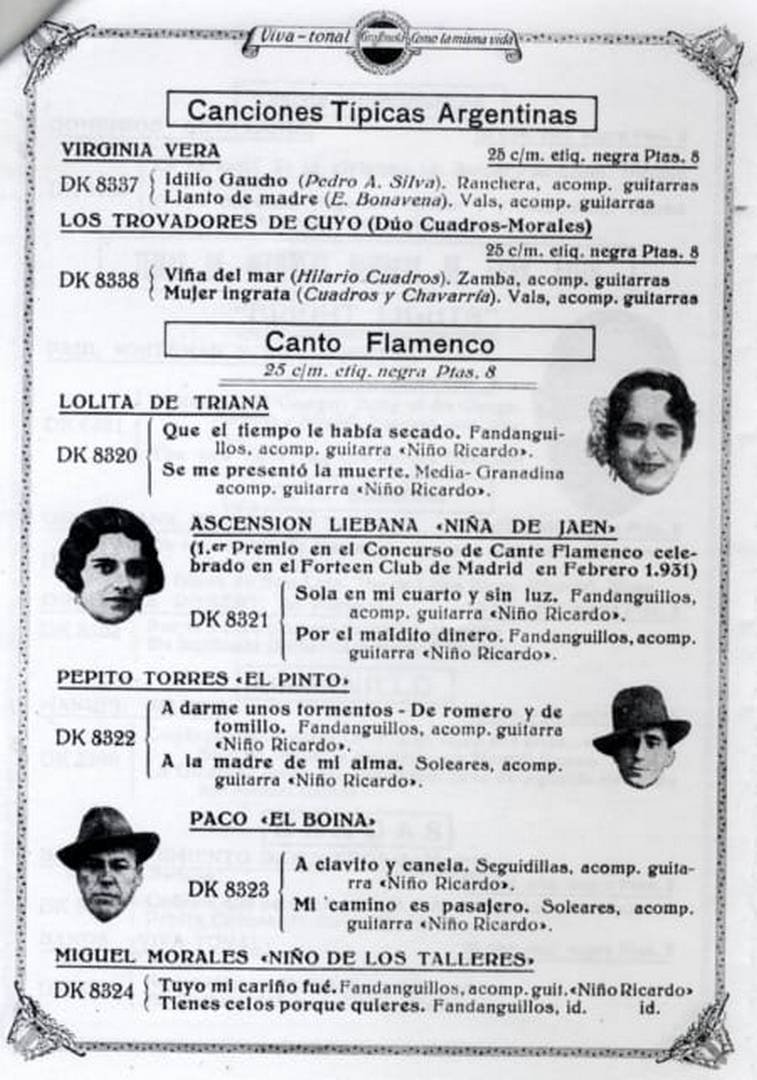 “Sin haberte dao un motivo” es una letra archiconocida de tientos que proceden de Pastora María Pavón Cruz “La Niña de los Peines”, figura muy presente a lo largo de sus impresiones en discos de pizarra, en prácticamente todos los estilos.