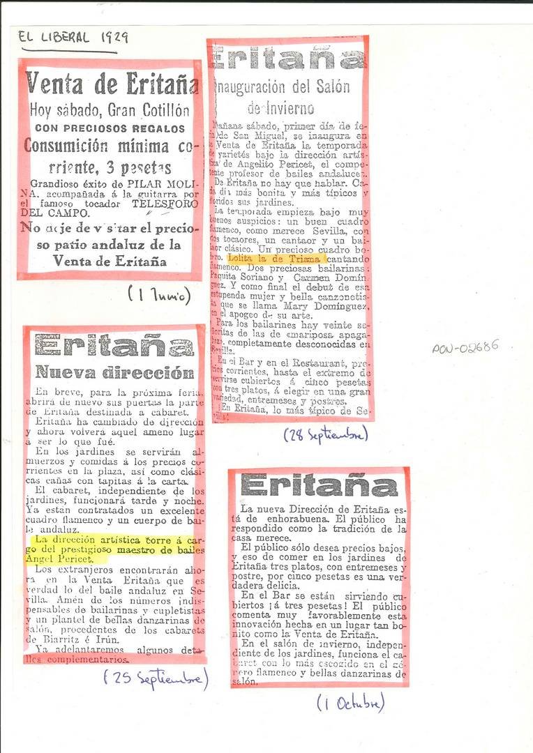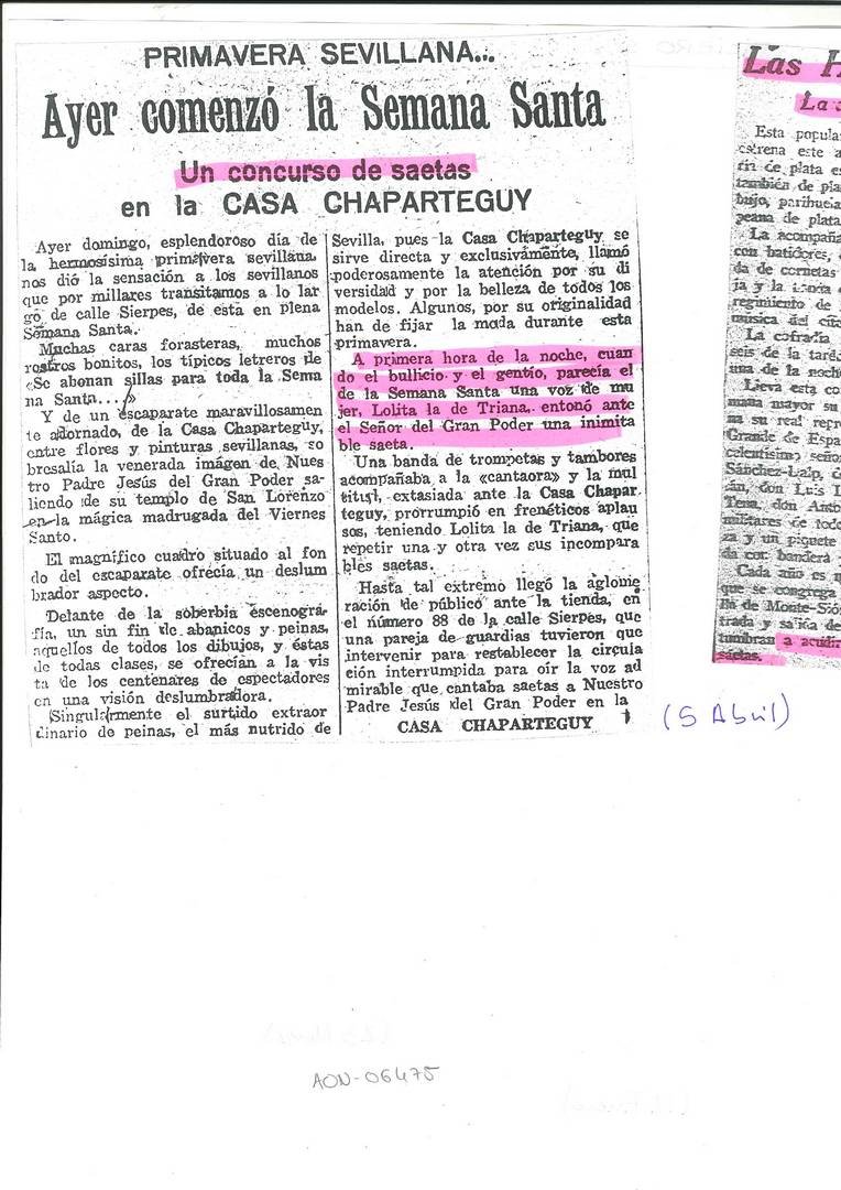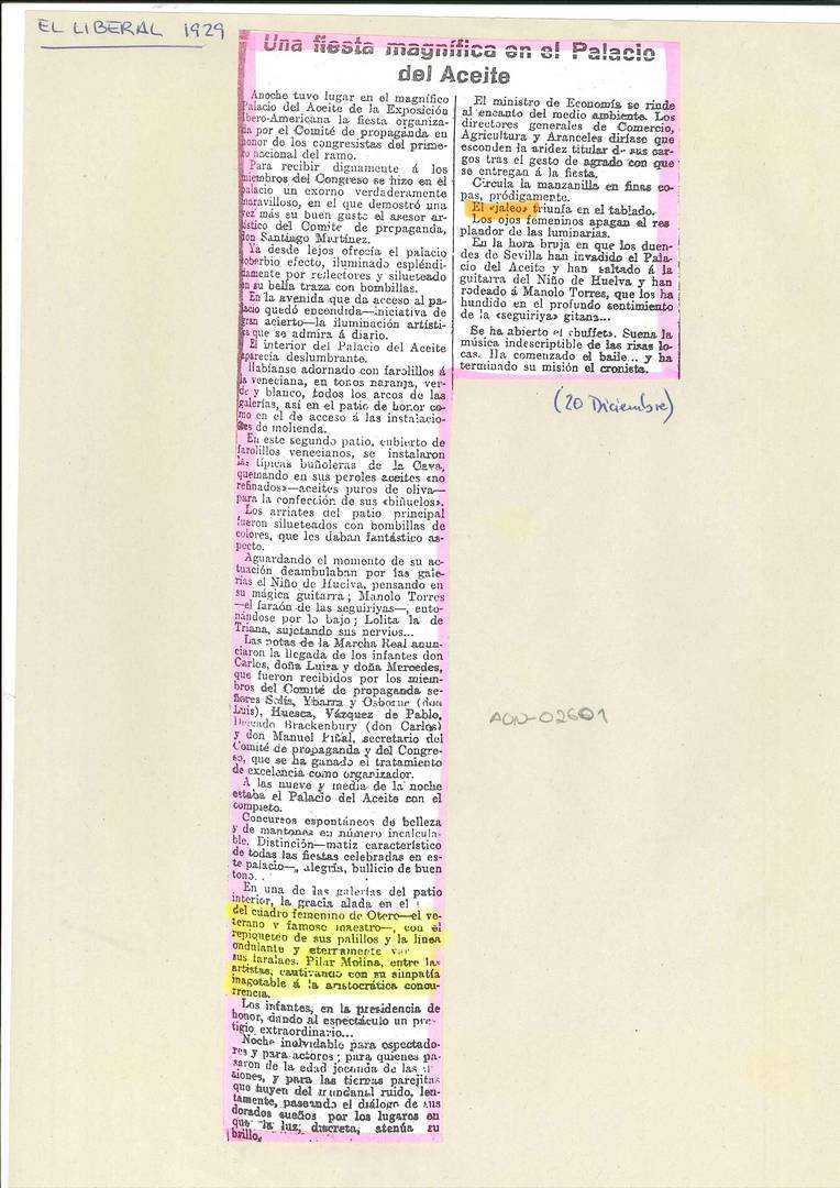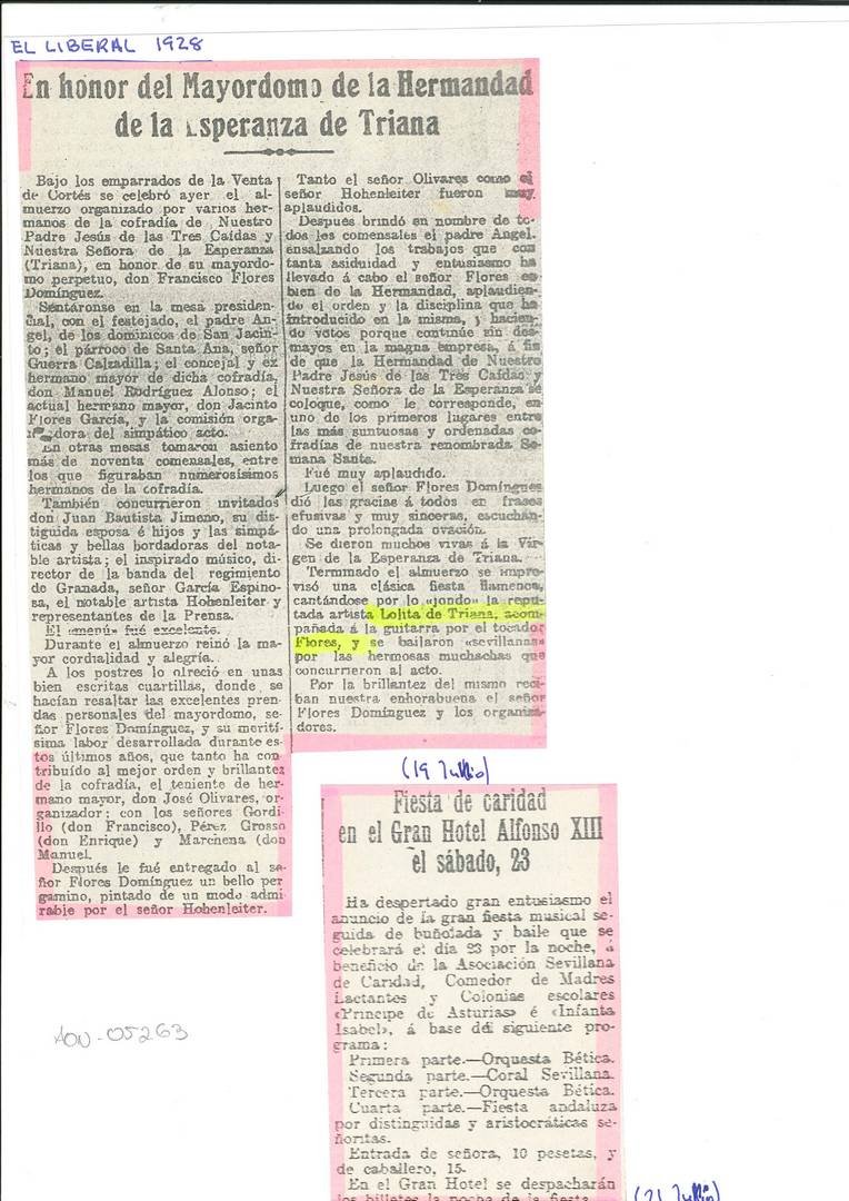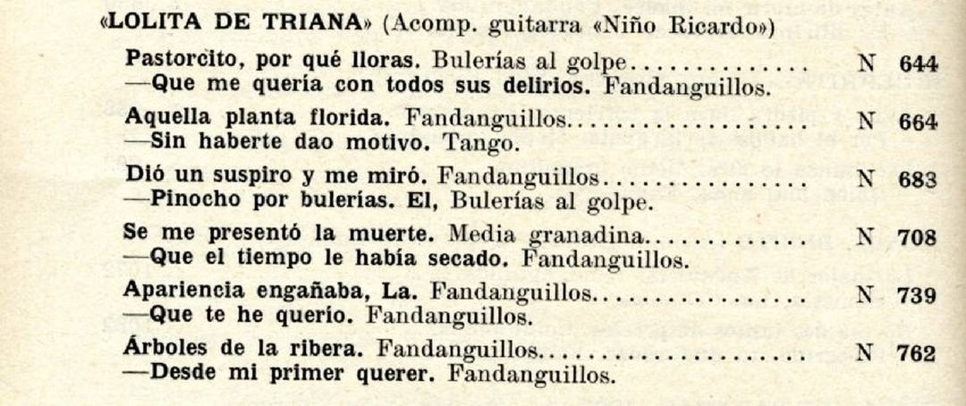 Al margen de esa fotografía, nos ha llegado una recientemente por la cual lanzamos un dardo al aire al sospechar que la artista que se puede ver al lado de El Niño Ricardo podría tratarse de Lolita de Triana. Esperamos que alguien nos lo ratifique o lo desmienta. Estamos abiertos a subsanar posibles errores y a construir un conocimiento que hasta la presente no solo era escaso sino que rozaba la inexistencia.