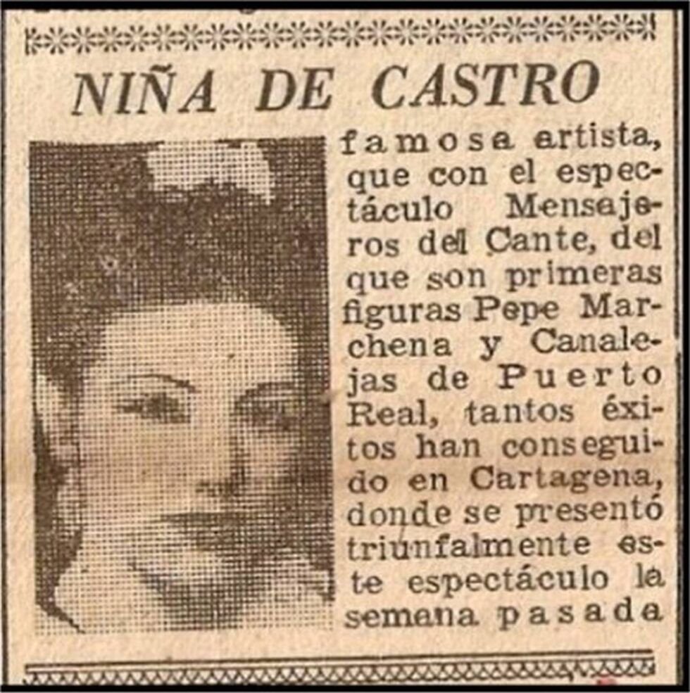 El 13 de abril de 1932 Debuta en el teatro Fuencarral de Madrid en un espectáculo de Opera Flamenca compartiendo escenario con otras figuras del genero como Corruco de Algeciras, Niño de Talavera, Chaconcito, Niña de la Puebla, Carbonerillo, y la Niña de los Peines, es a partir de estos primeros años, 30. Cuando Impresiona sus únicas y escasas grabaciones que nos dejo en disco de pizarra por cierto muy codiciadas por los coleccionistas de hoy en día donde se puede apreciar y escuchar la voz joven fina y bonita de su época más gloriosa llena de éxitos.
