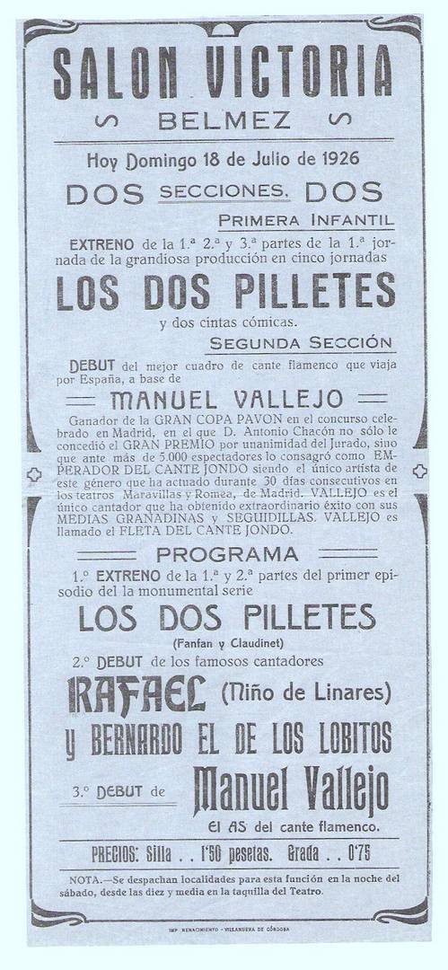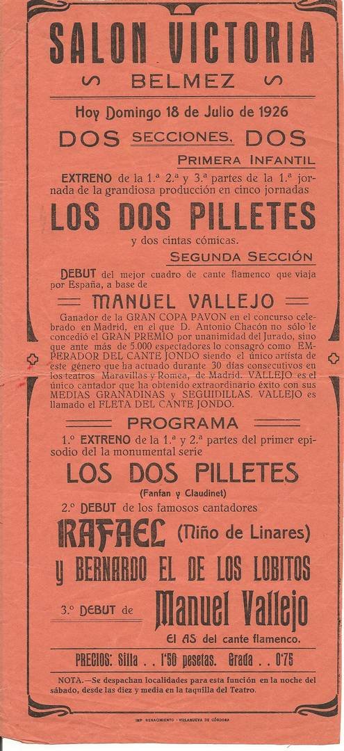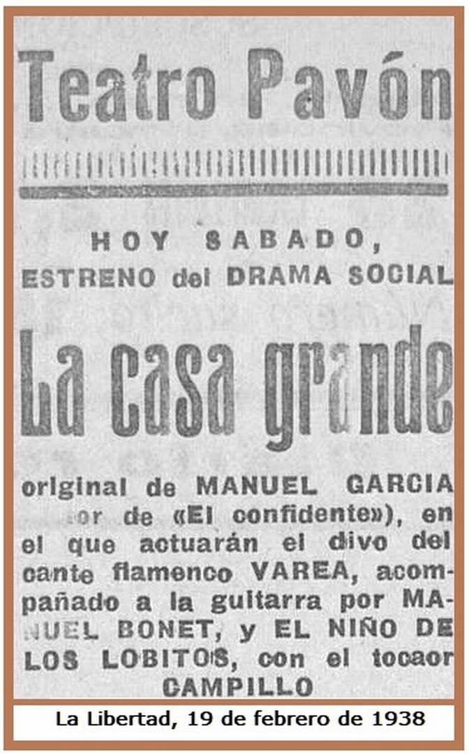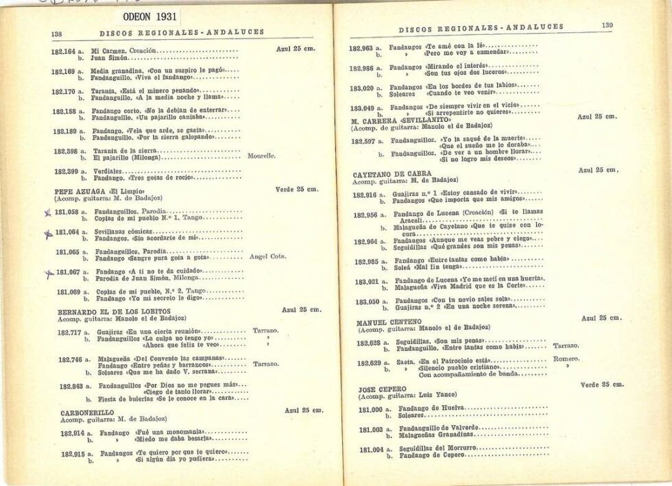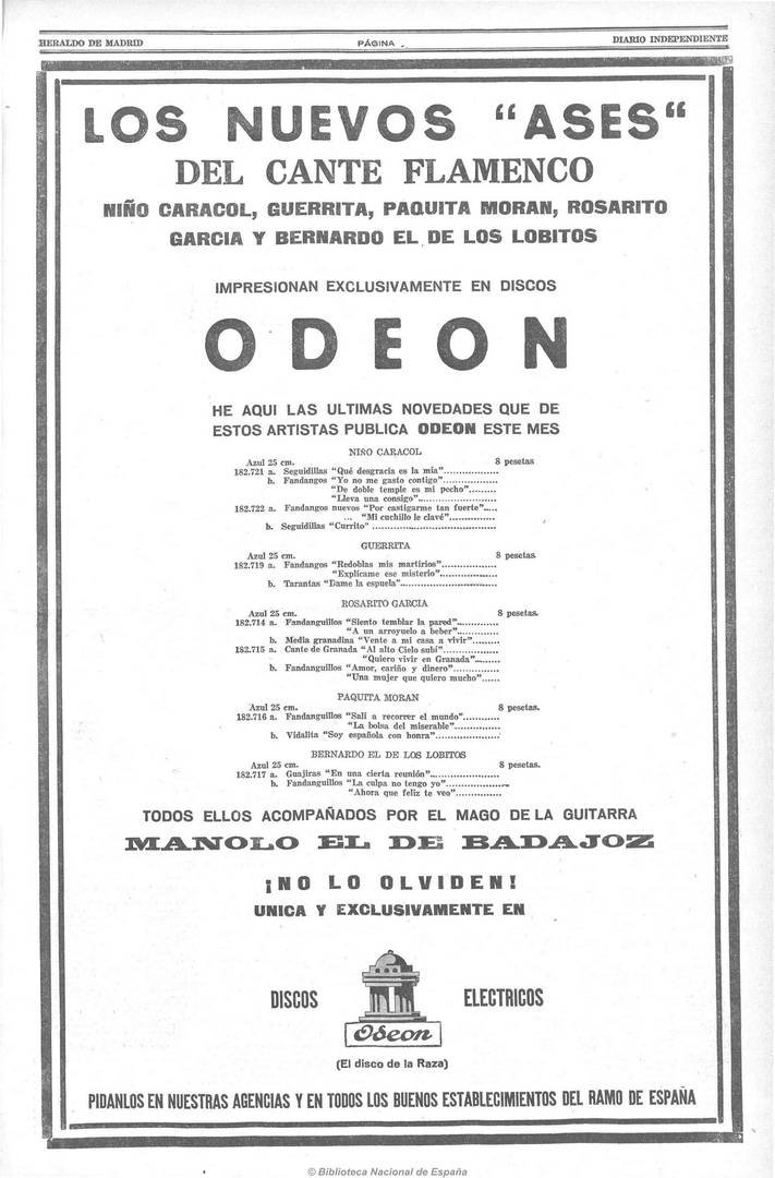 Para la casa Pathé dejó grabada otra letra por seguiriya, pero lamentablemente no poseemos esa grabación, por lo que no es imposible determinar el estilo y la letra. Ojalá algún día podamos disfrutarla y ponerla al servicio de la humanidad. “Hermano de mi alma” es otro de sus títulos.