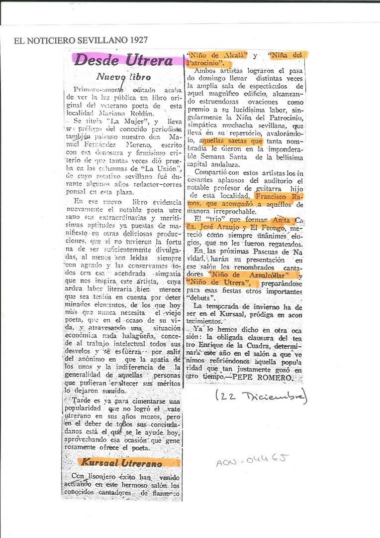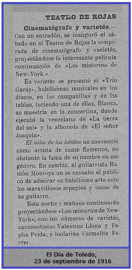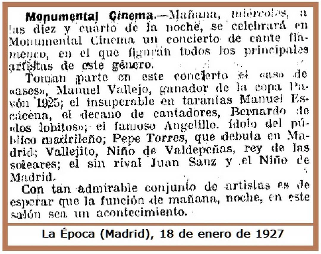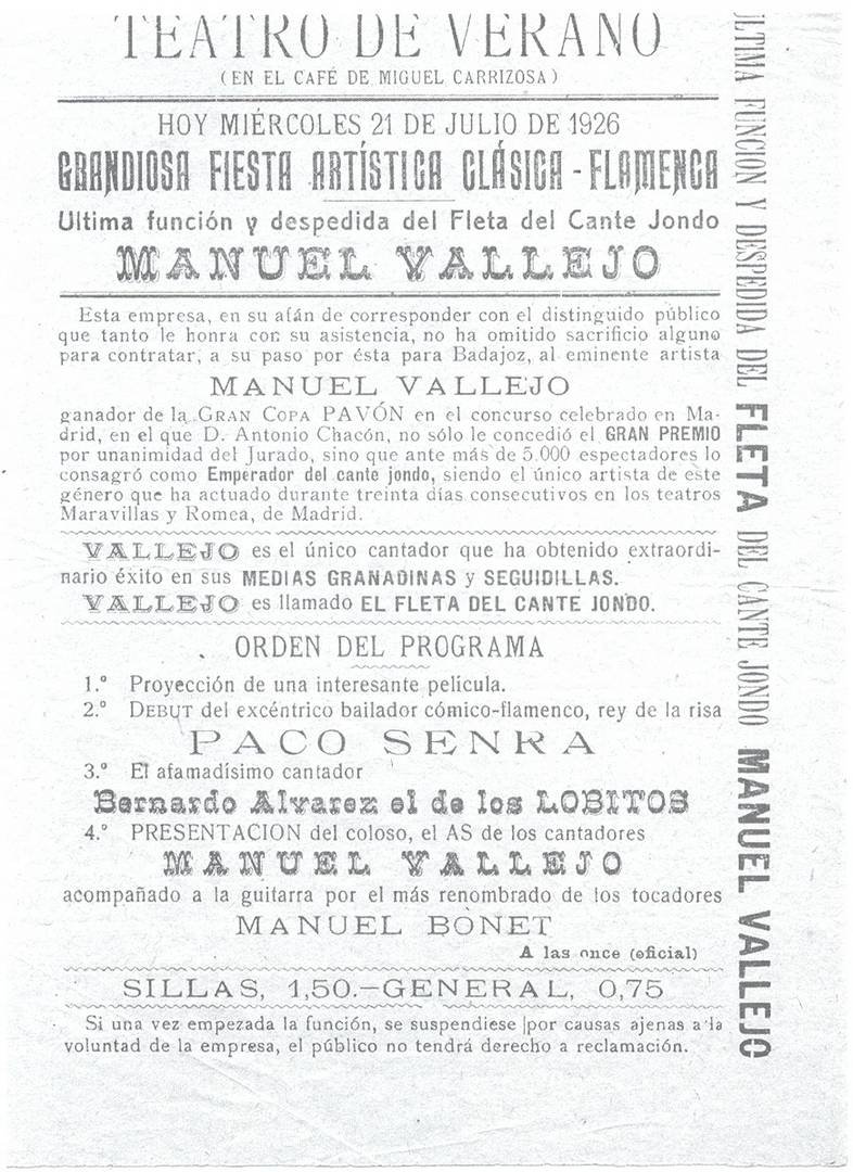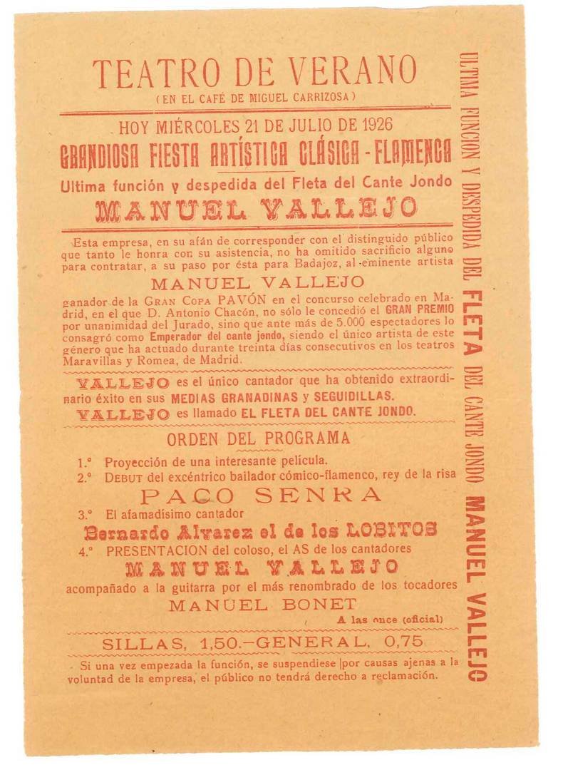 Para la casa Pathé dejó grabada otra letra por seguiriya, pero lamentablemente no poseemos esa grabación, por lo que no es imposible determinar el estilo y la letra. Ojalá algún día podamos disfrutarla y ponerla al servicio de la humanidad. “Hermano de mi alma” es otro de sus títulos.