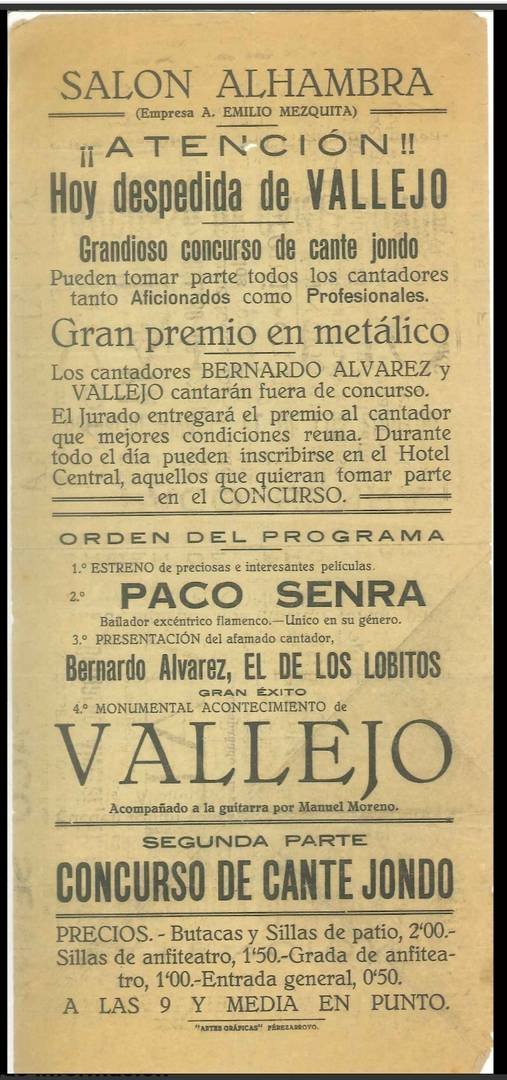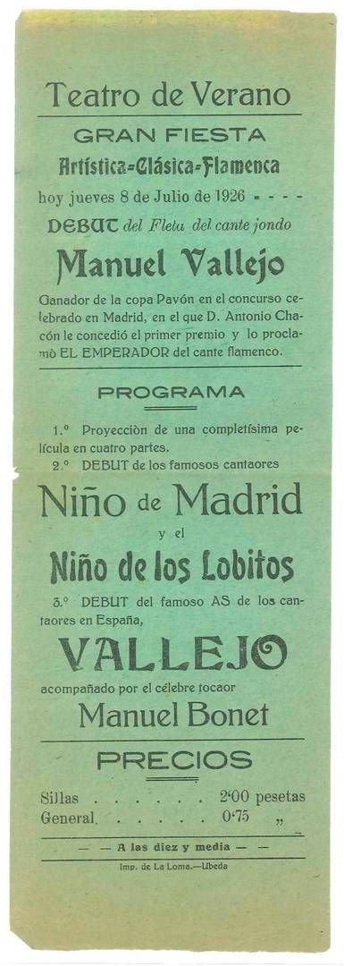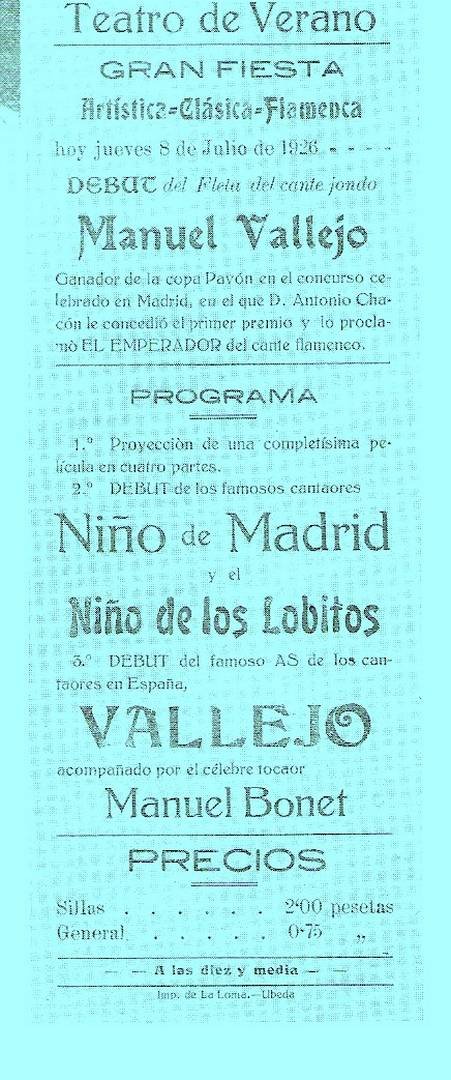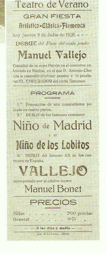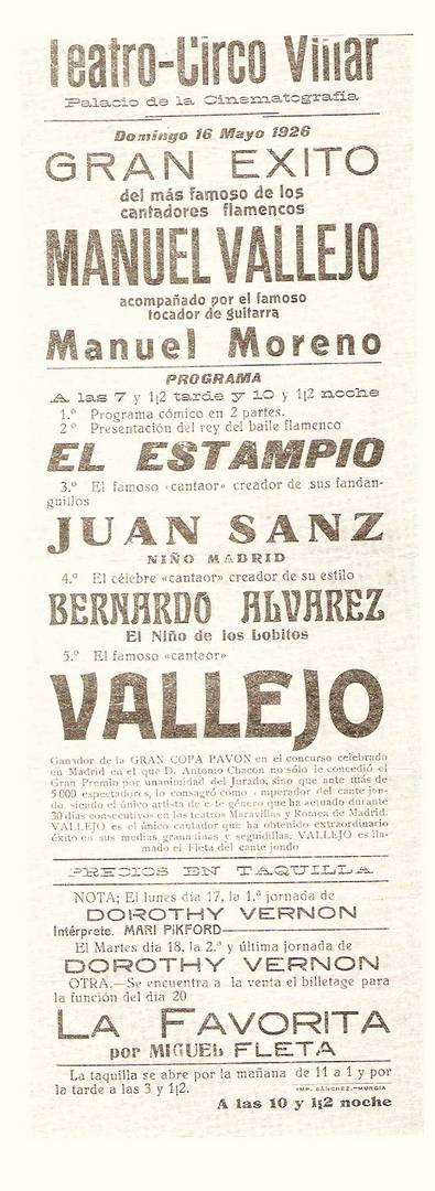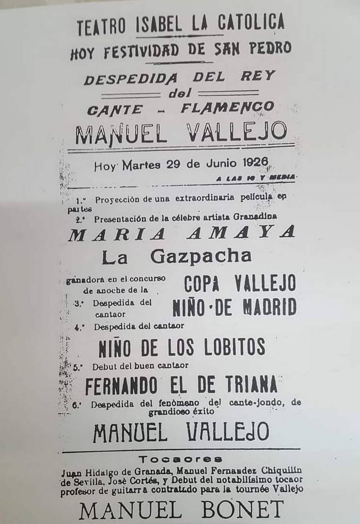 “Fue culpa tuya y no mía” es una media granadina o granadina corta propia de Don Antonio Chacón.