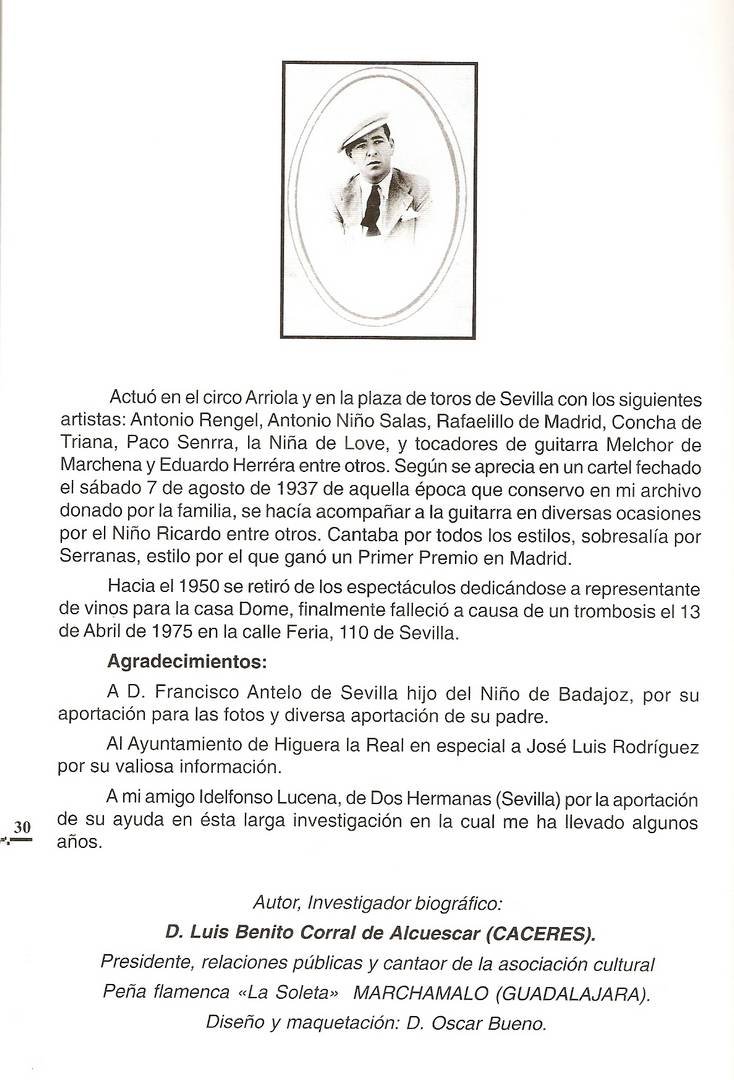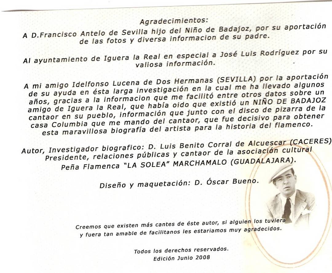 Pensamos que nos falta un cante de El Niño de Badajoz, que es el que correspondería a la otra cara de la bulería. Al no tener la grabación, ni siquiera los datos, lo dejaremos como interrogante. En caso de obtener la misma o lo que sería mejor, la grabación, no dudaremos en compartirla con la humanidad.
