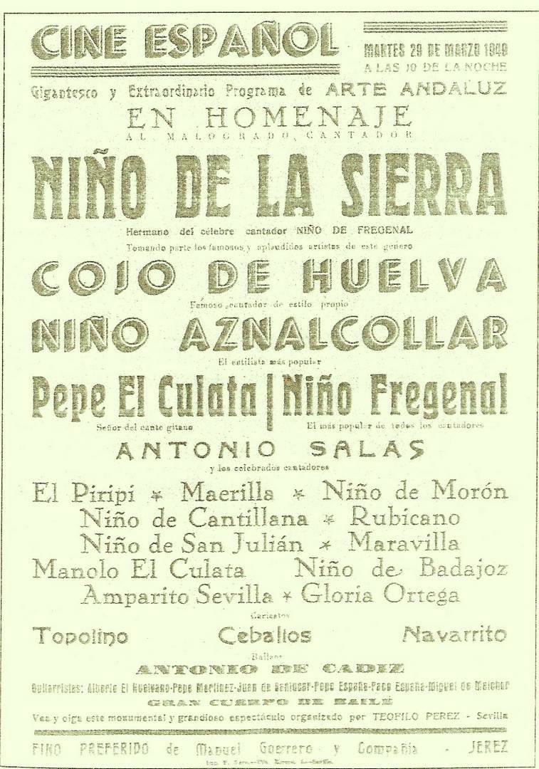 En 1949 aparece como uno de los artistas que interviene en un homenaje que se realizó al también cantaor Niño de la Sierra (hermano del Niño de Fregenal).