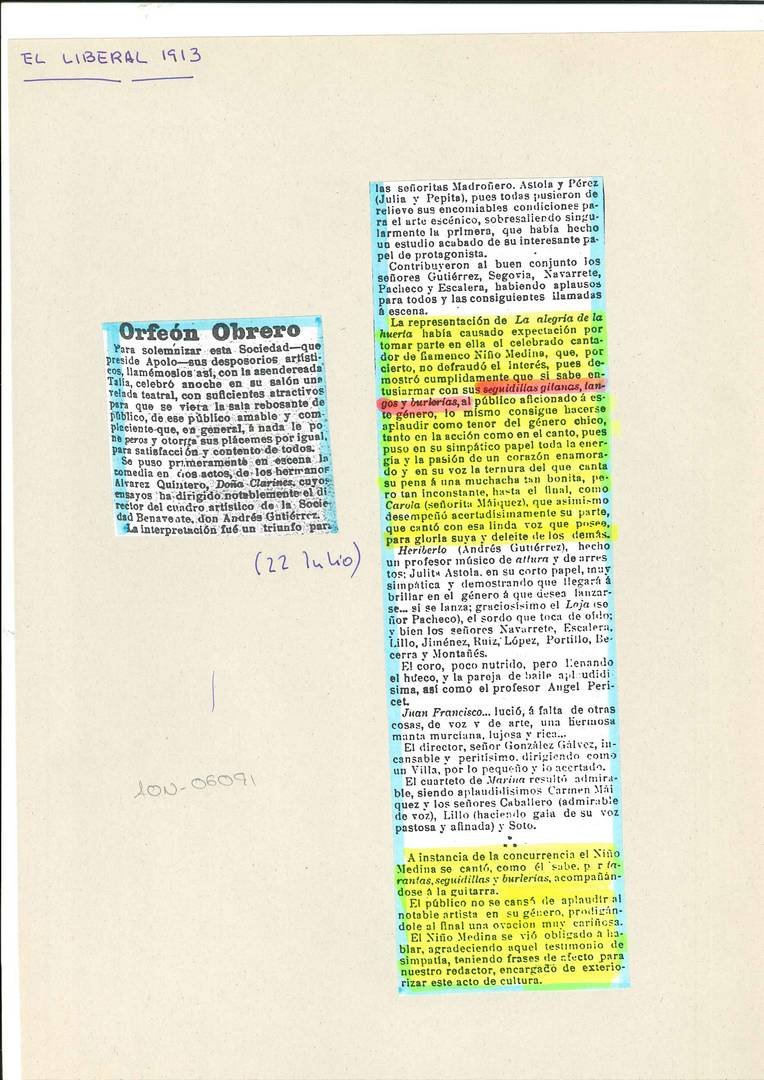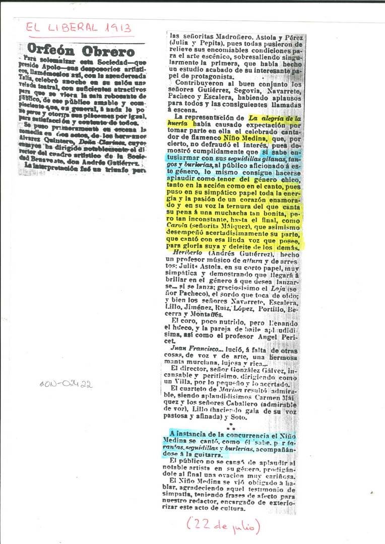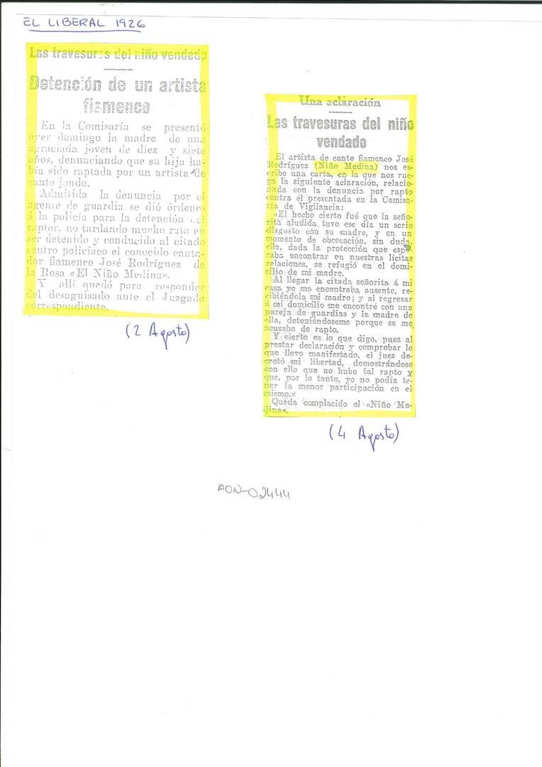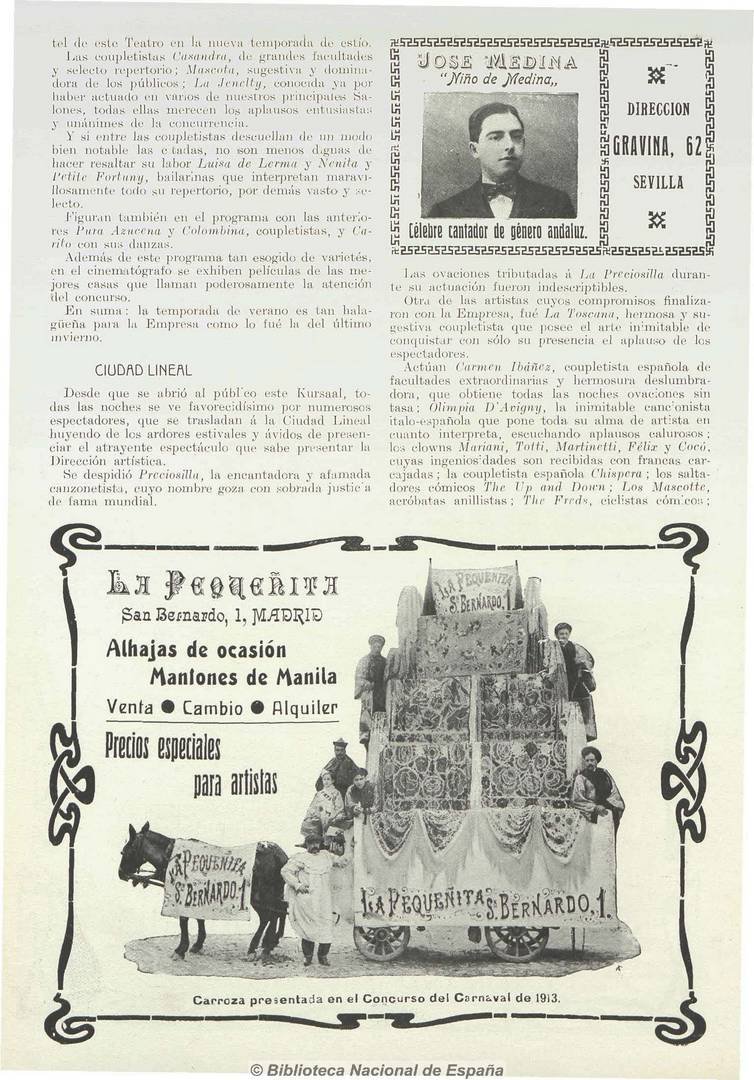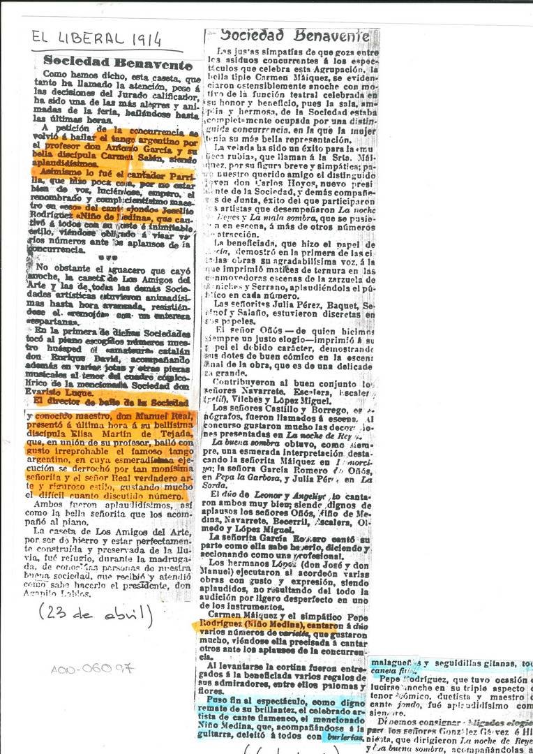 “Yo nací en Argel” y “Cuando tienen un vestío” son las dos letras iniciales que interpreta El Niño de Medina con aires de Jerez. Nos recuerda en gran medida a Pastora Pavón “La Niña de los Peines”, por lo que nos planteamos la eterna duda de quién copió a quién, jamás dilucidada.