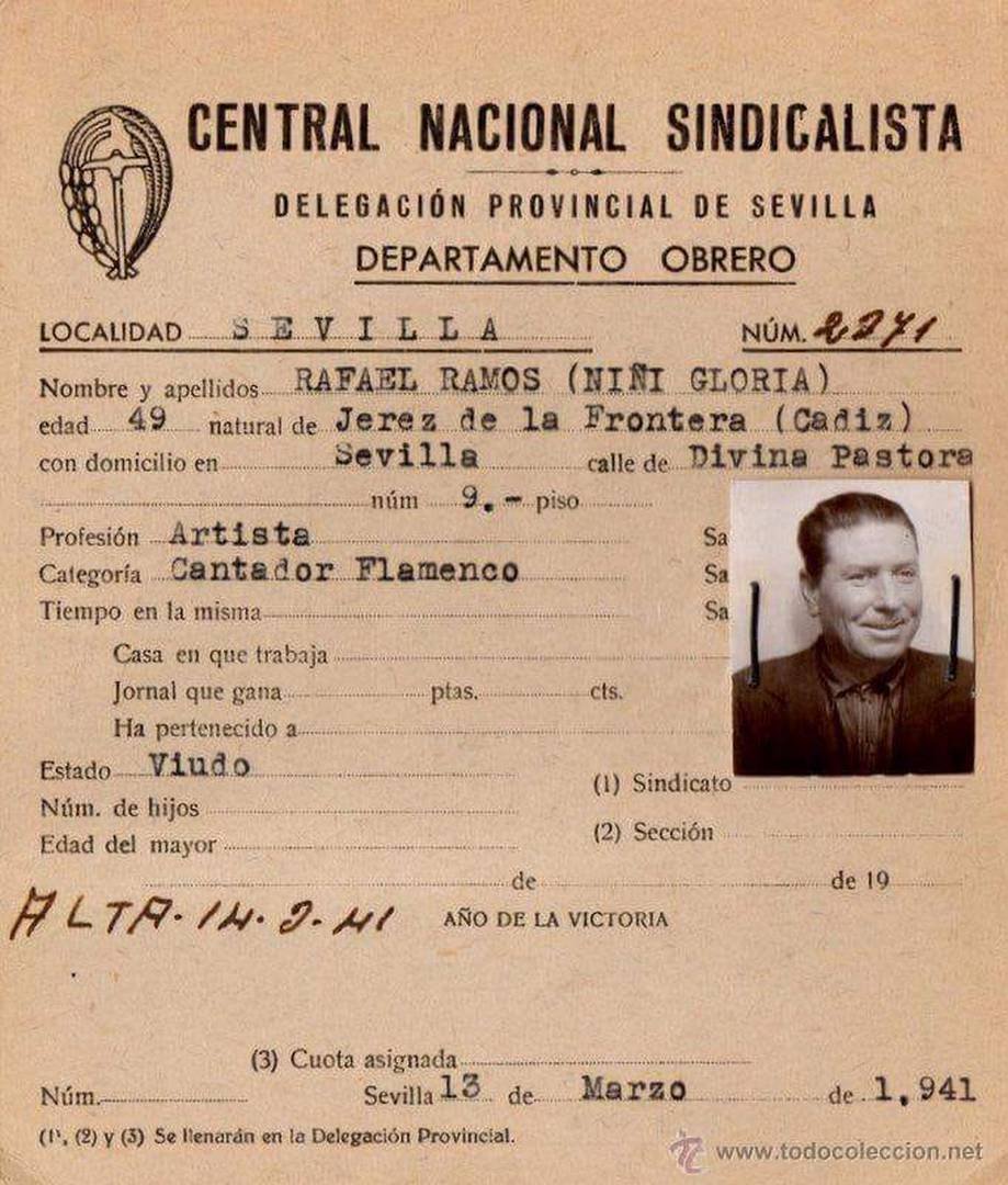 Rafael Ramos Antúnez, conocido como El Niño Gloria o simplemente El Gloria, nació en Jerez de la Frontera, en el barrio de Santiago, el 27 abril de 1893 en una familia gitana con fuerte tradición flamenca.