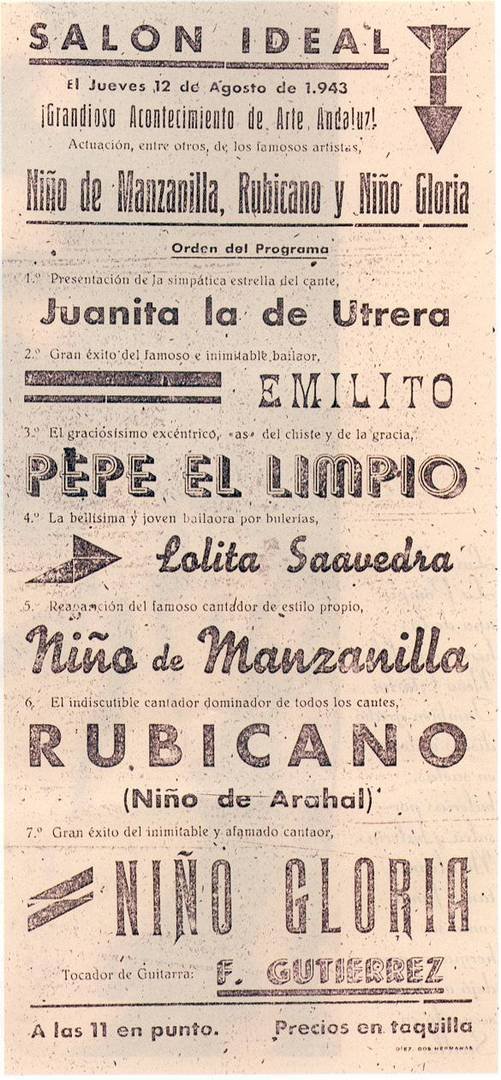 Además, fue muy valorado por su cante para el baile, lo que le llevó a colaborar con las mejores bailaoras de su tiempo y a participar en espectáculos de ópera flamenca y giras por toda España junto a figuras como Pepe Marchena, Manolo Caracol y La Niña de los Peines.