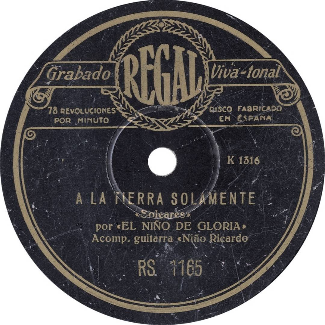 “A la tierra solamente” es una soleá de Cádiz, concretamente de Enrique El Mellizo. Hemos de reconocer que no se prodigó El Niño de Gloria por este estilo de soleá pura, no así con la bulería por soleá en el que demostraba un poder y dominio de la técnica y del compás dignos de elogio.