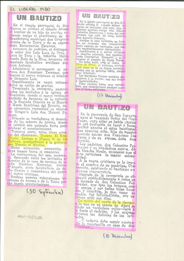 Su apodo surgió por un villancico que cantaba con aires de bulerías, con el estribillo “Gloria al recién nacido Gloria”, y que se hizo famoso.