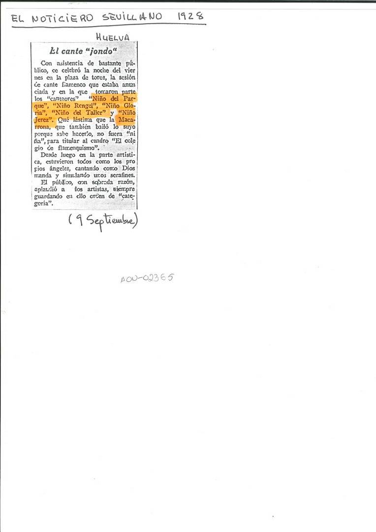 Por otra parte, tenemos unos fandangos cortos. Aunque siempre la flamencología ha considerado creación de El Niño de Gloria, otros miran hacia Rafael Pareja como su verdadero creador. “Te tiene que castigar” es un claro ejemplo de este estilo.