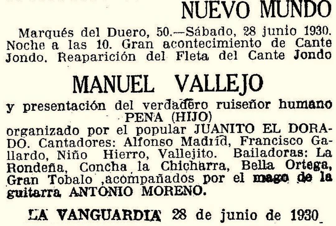 A lo largo de los años veinte compartió escenarios con artistas como El Niño de Marchena, Pepe Aználcollar y El Niño del Genil, y llegó a competir en Madrid con El Gloria, Antonio Rengel, Paco Isidro y El Canario de Colmenar. En Barcelona alternó con Manuel Vallejo, con quien también integró diversos espectáculos, y en esa misma ciudad realizó grabaciones de fandanguillos acompañadas por Miguel Borrull, Ramón Montoya y Luis Yance, algunas de ellas recopiladas posteriormente en la antología Cantaores de Córdoba.