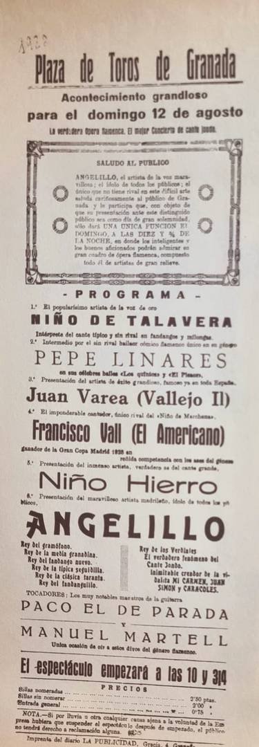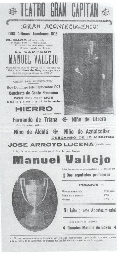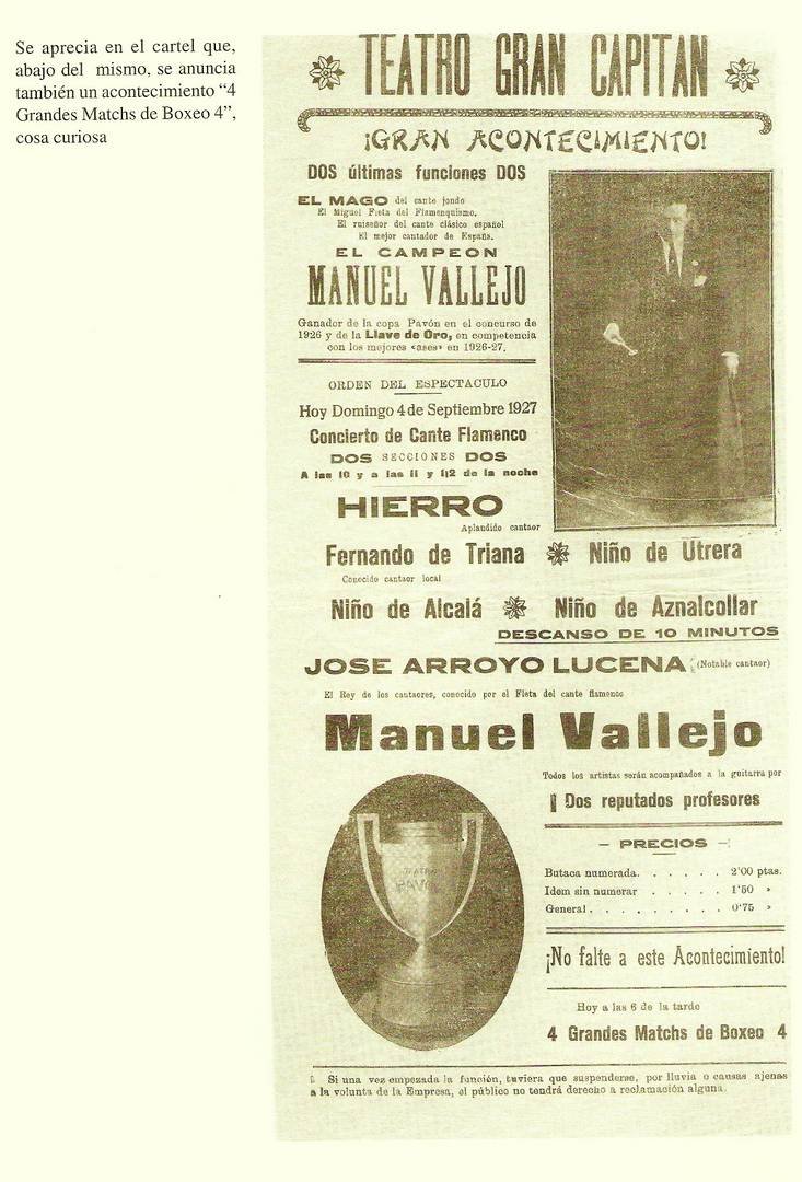 “Al Niño de Cabra lo conoció desde su juventud, y cuando se retiró en bastantes reuniones que montó en Puente Genil, a las cuales venía Cayetano desde Benamejí, que ya estaba prácticamente retirado de los escenarios, de ahí que asimilara sus cantes con esa fidelidad con que luego los hacía, era su referente, junto con Chacón. Más o menos puedes complementar con esto. Yo tengo un libro monográfico sobre Juan Hierro de Saetas, con las Cuarteleras sobre todo, de unas 150 páginas, no se cuando lo podré publicar, pero eso es específico de aquí”