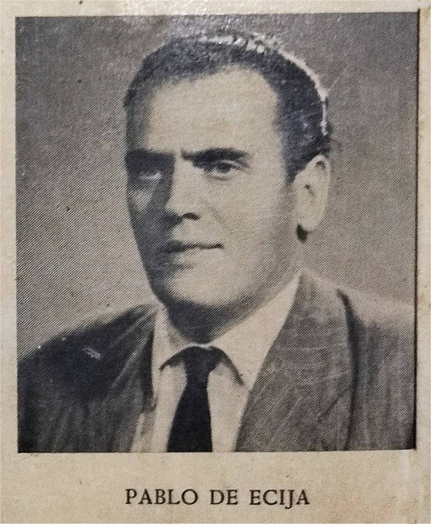 Pablo de Écija fue el nombre artístico de Pablo Carmona Basilia. Vino al mundo en Ecija (Sevilla) el 11 de febrero de 1914, y murió en septiembre de 1974 en Granada. Aprendió los cantes de su madre Rosa “la Andrés”. Fue guardia municipal en Écija. Se le pudo escuchar actuando en Málaga y Granada, concretamente en el hotel Palace de esta última ciudad. Desafortunadamente dejó constancia de su arte en dos grabaciones de discos de pizarra, lo que supuso un único disco, pero no nos cabe duda de que fue un cantaor con una voz portentosa y unas cualidades vocales dignas de mención y de estudio.
