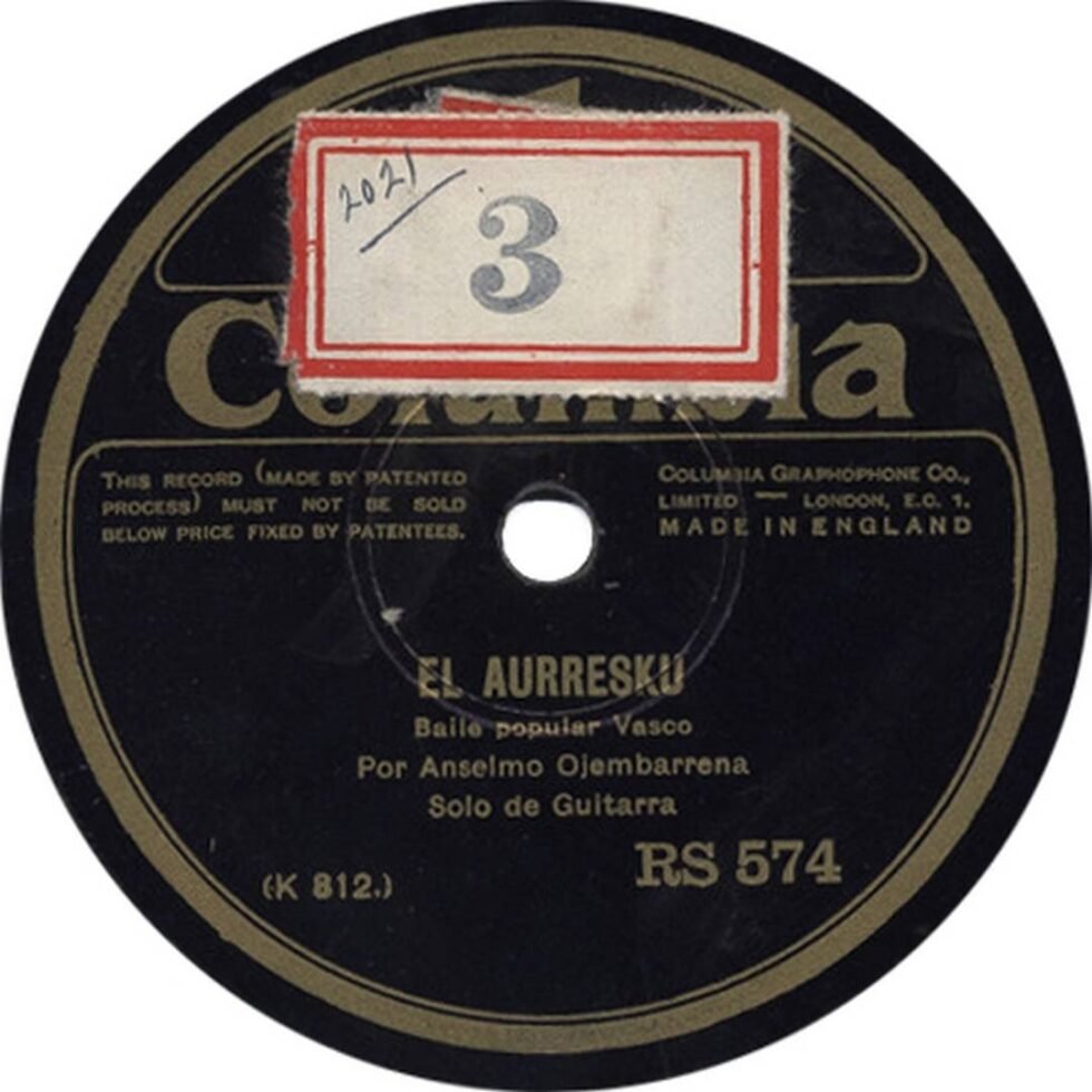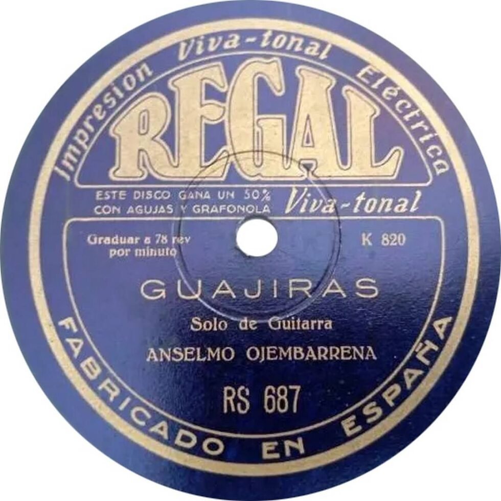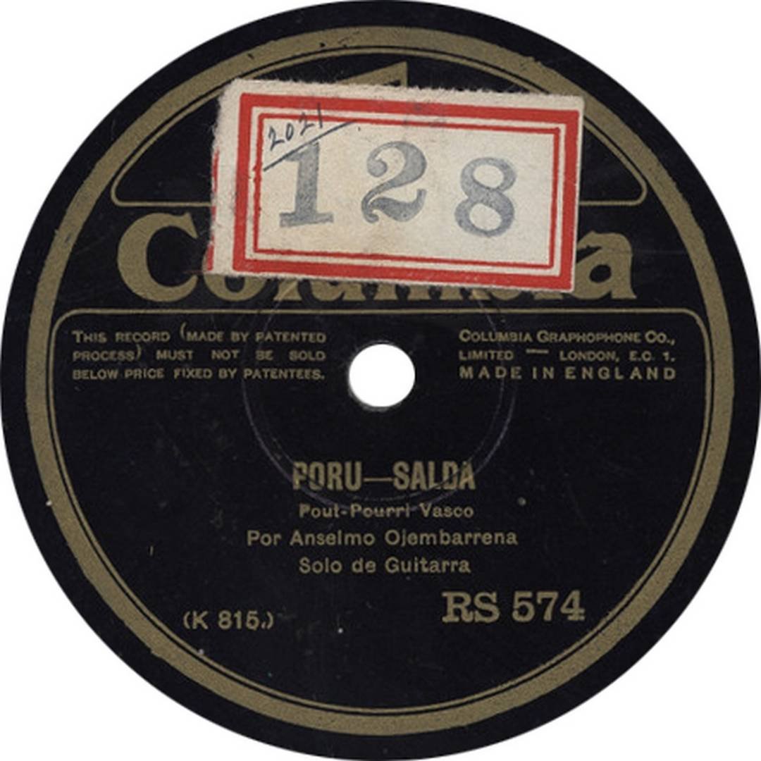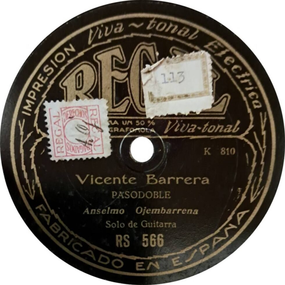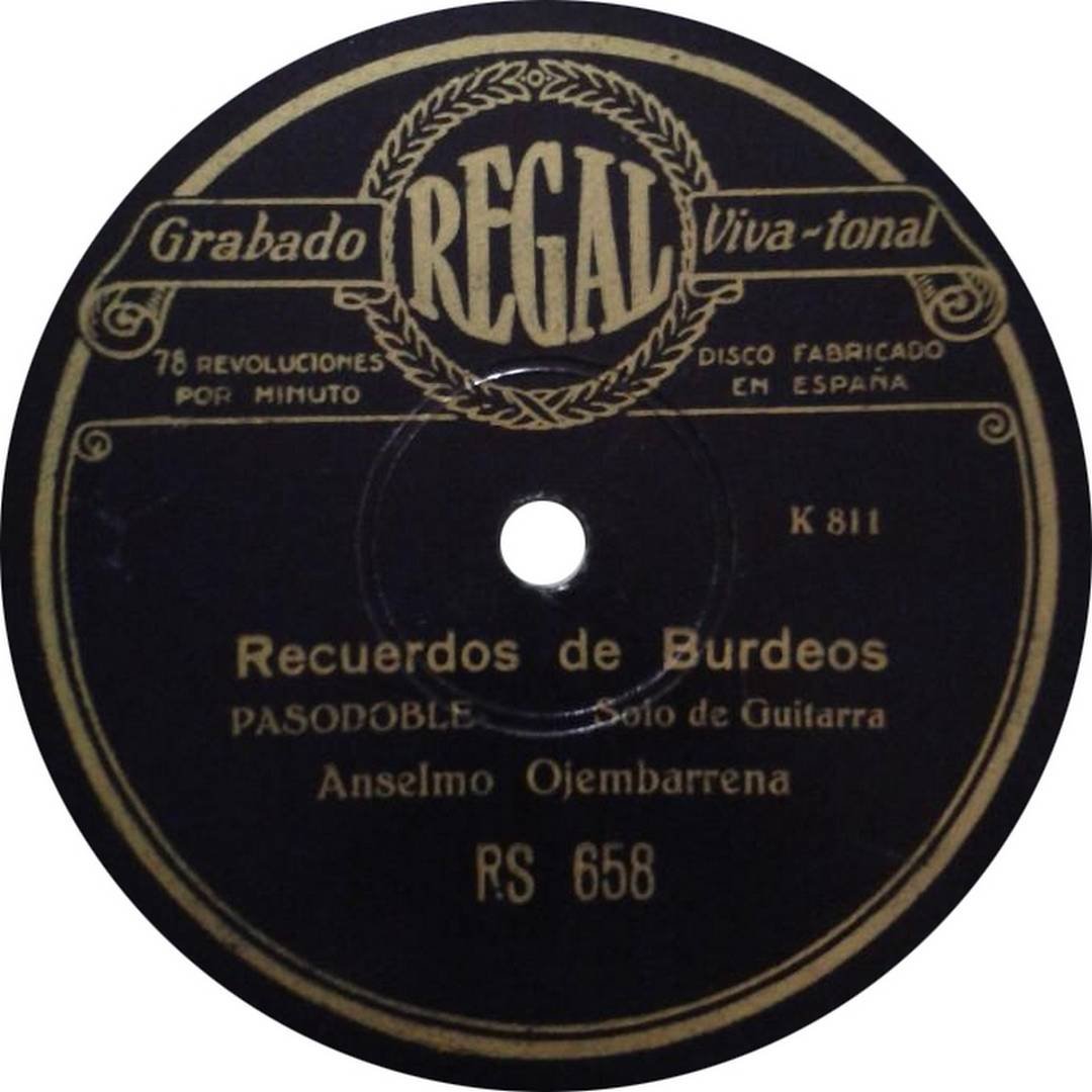 La tabla discográfica de Regal en España recoge los siguientes registros: RS-566 con Bulerías y el pasodoble “Vicente Barrera”; RS-574 con “El aurresku” y “Porrusalda”; RS-658 con una jota y “Recuerdos de Burdeos”; RS-687 con Soleares y Guajiras. Esta producción lo sitúa entre los pocos guitarristas vascos que participaron en el incipiente mundo de la grabación sonora en la era de la pizarra.