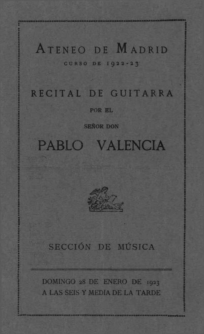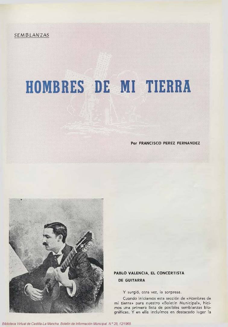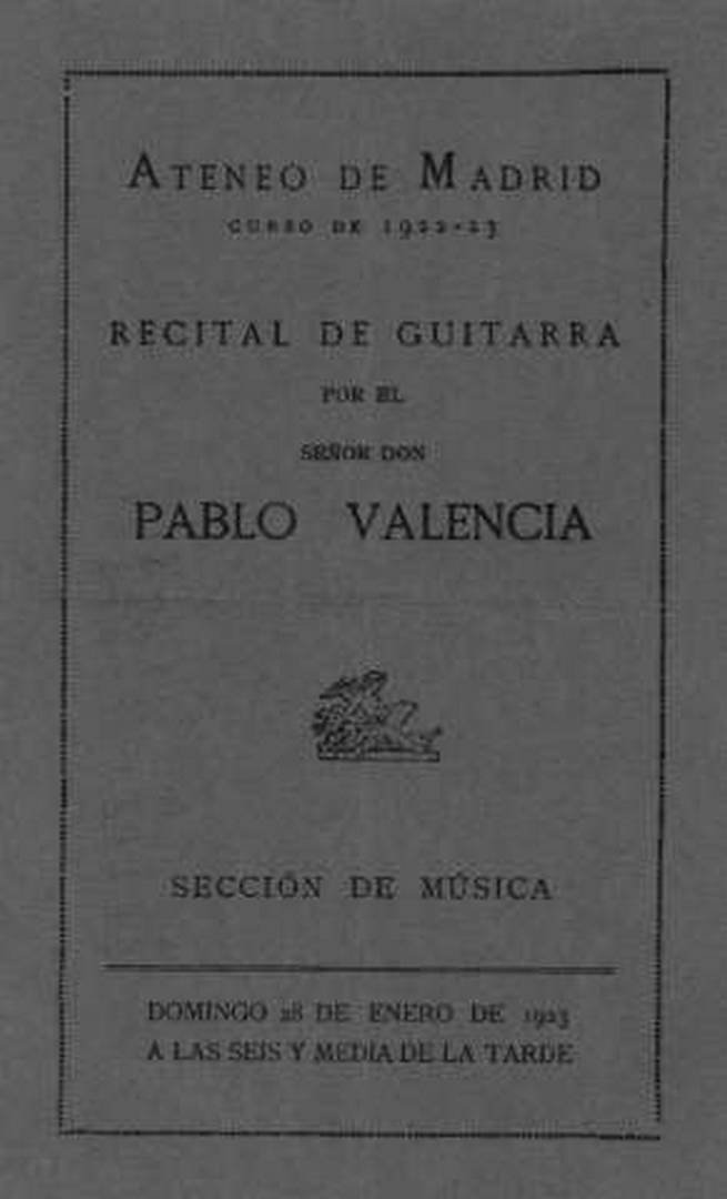 Pablo Valencia Cuerva nació en Cuenca el 2 de mayo de 1880. En 1892 llegó a Ciudad Real como consecuencia de un traslado de su padre (Guardia Civil) y aquí ya se estableció definitivamente. Con una gran formación clásica llegó a dar conciertos en casi toda España incluso en Francia y Portugal.