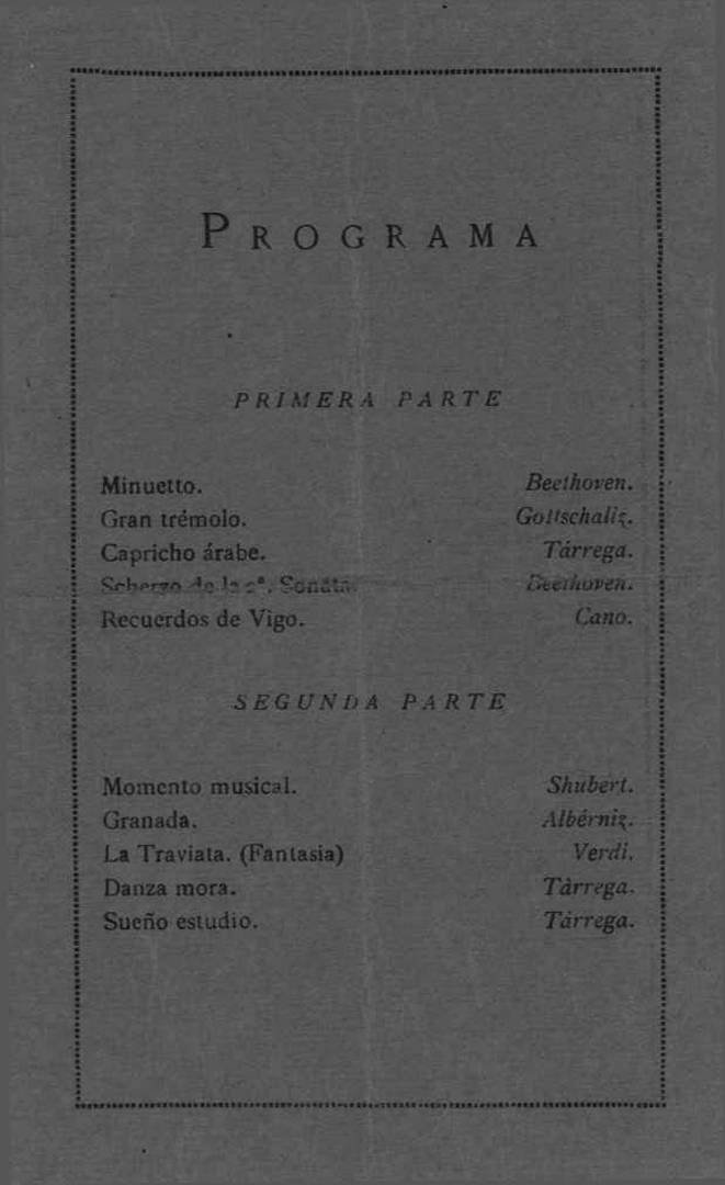 Entre sus conciertos más destacados cabe mencionar el que llevó a cabo en A Coruña allá por el año 1906, lo cual le supuso un éxito sin precedentes.