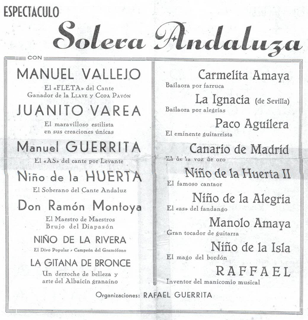 Su legado: – Grabó con algunos de los grandes del flamenco, como Manolo Caracol y Antonio Mairena.